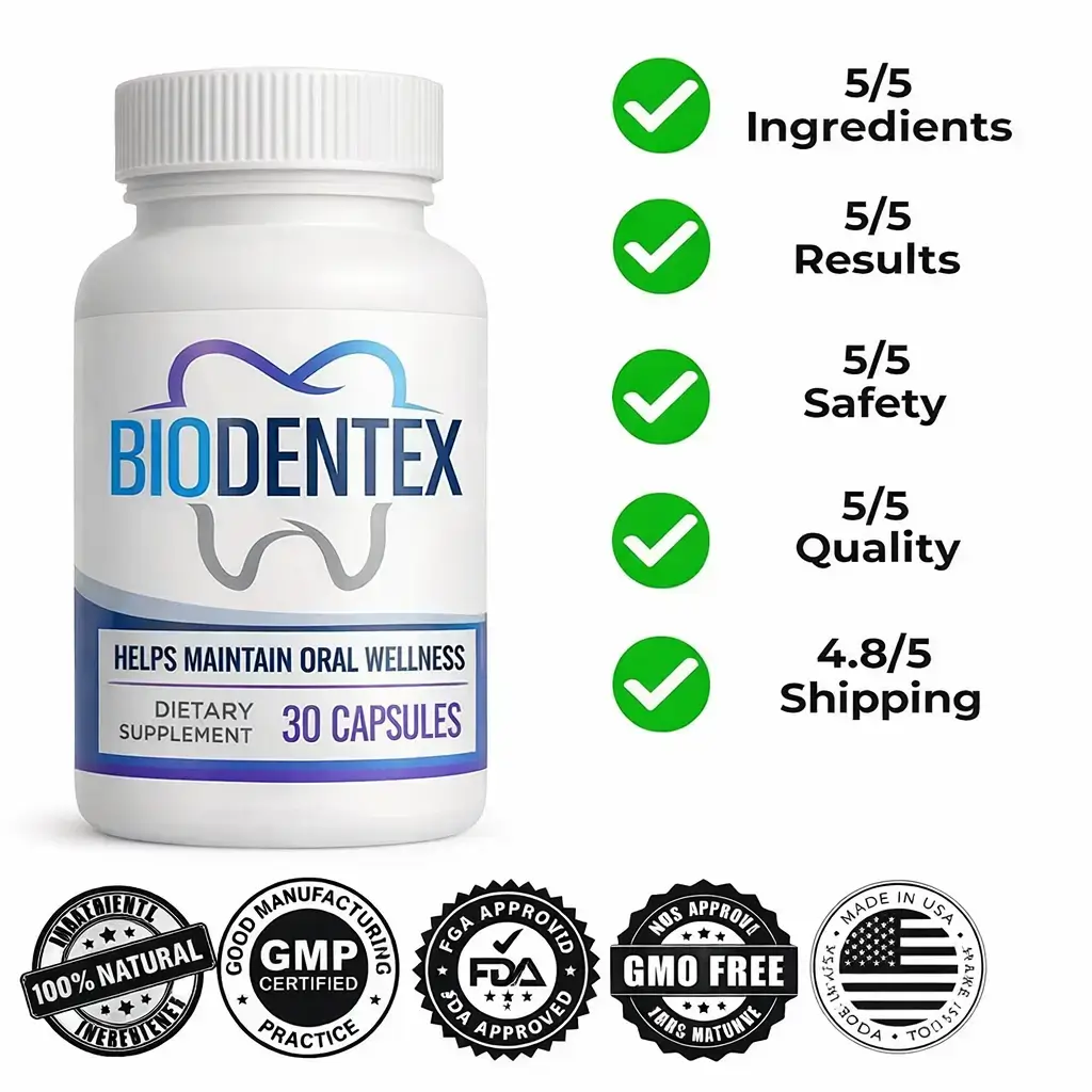 Biodentex is 100% natural, with no harmful additives or side effects, and made with rare salivary biotics in a GMP-certified facility. The fast shipping and premium packaging were a bonus. If you’re tired of bleeding gums, sensitivity, or bad breath, this is the only supplement that truly delivers real, lasting oral health results.“